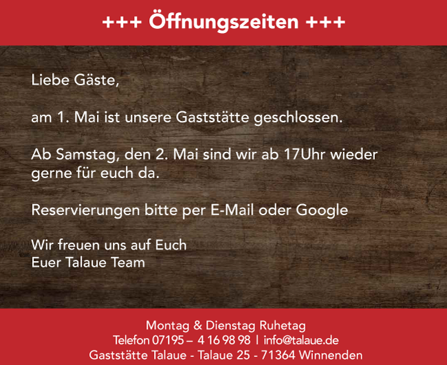 Liebe Talaue Gäste